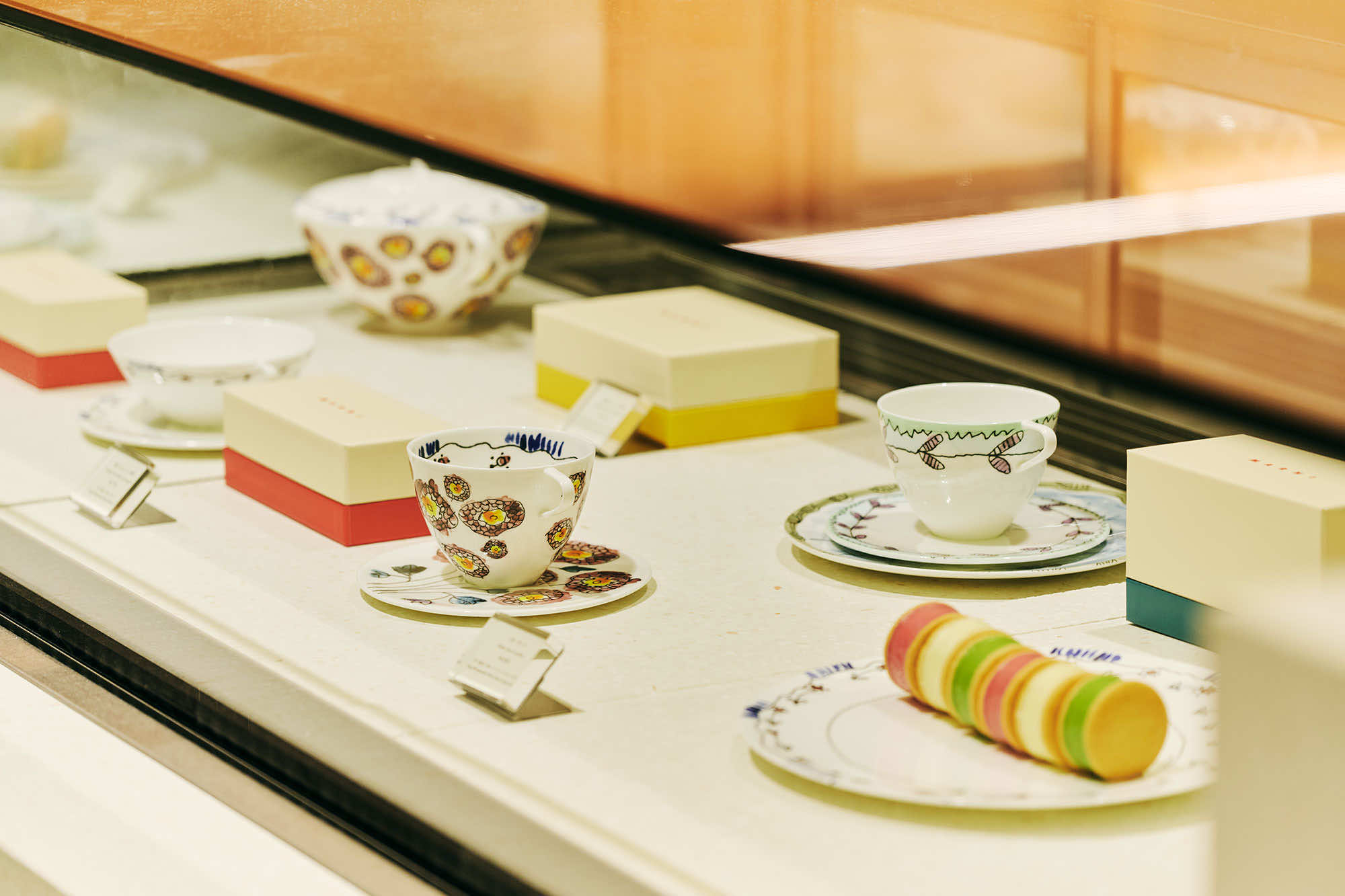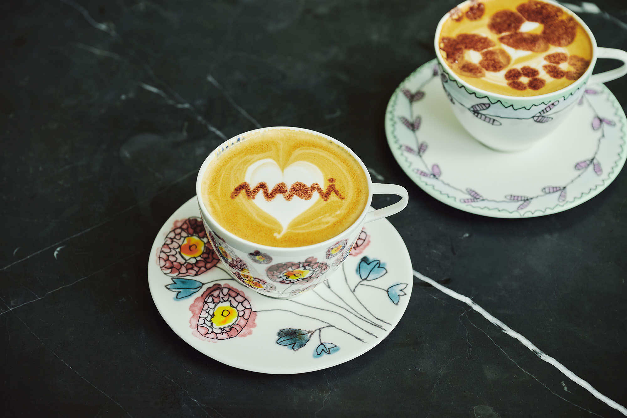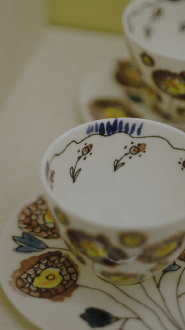 また、カフェで使用されているベルギーのセラックスとのコラボレーションによるテーブルウェアコレクション《ミッドナイトフラワーズ》のカップ&ソーサーやプレート、グラスも販売しています。マルニのファッションから飛び出したようなフラワーモチーフのチャーミングなデザインは、ご自宅用にはもちろん、大切な人へのギフトとしても重宝し、マルニの美意識を食卓へと運びます。