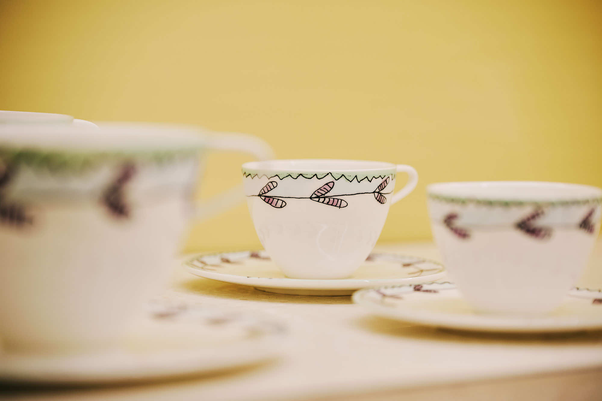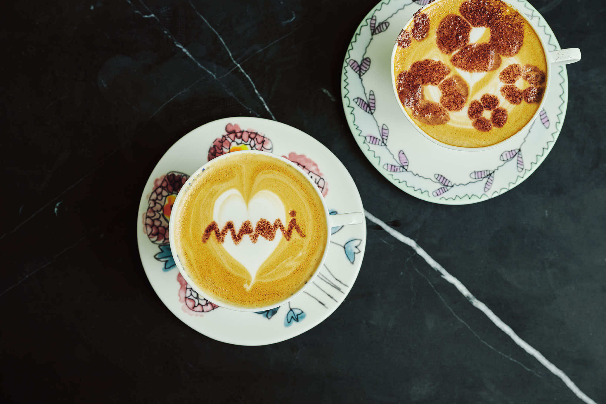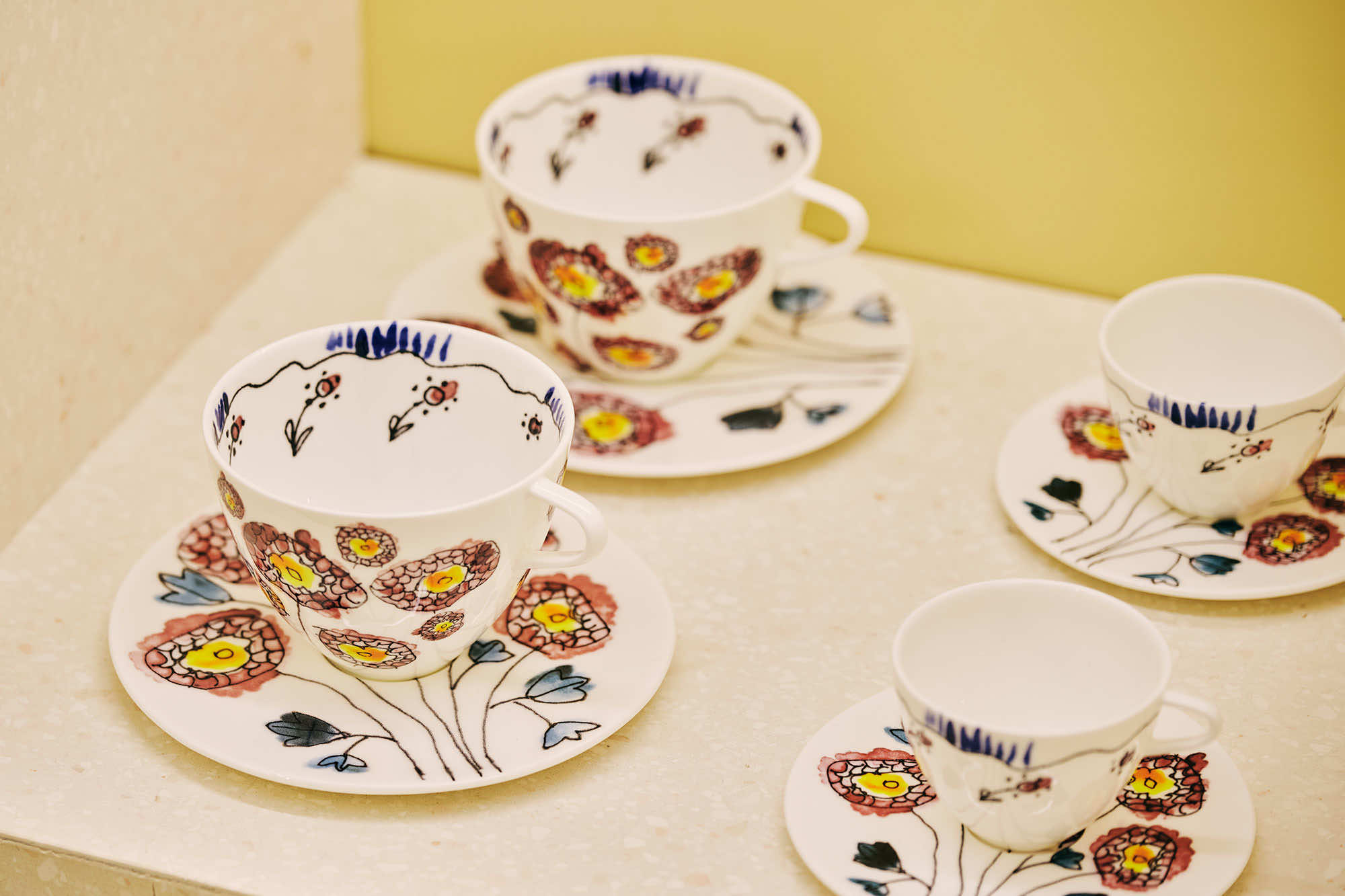 また、カフェで使用されているベルギーのセラックスとのコラボレーションによるテーブルウェアコレクション《ミッドナイトフラワーズ》のカップ&ソーサーやプレート、グラスも販売しています。マルニのファッションから飛び出したようなフラワーモチーフのチャーミングなデザインは、ご自宅用にはもちろん、大切な人へのギフトとしても重宝し、マルニの美意識を食卓へと運びます。
