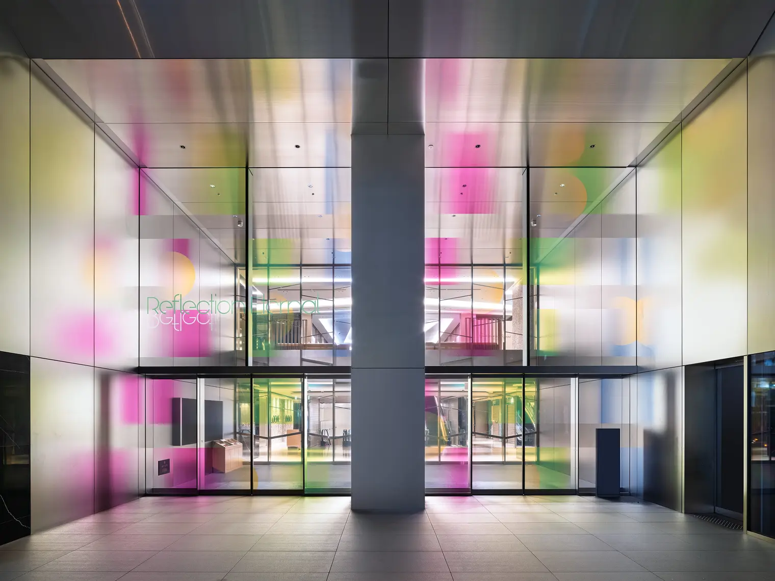 オブジェは音色を奏でるようにゆっくりと廻り、人々の訪れを、虹色の光と共に迎え入れる。 続いていく反射と、流れていく光、浮かぶ音色。今もひろがりを続ける名曲をインスピレーションに、デザインスタジオYARがディレクション・デザインを担当。