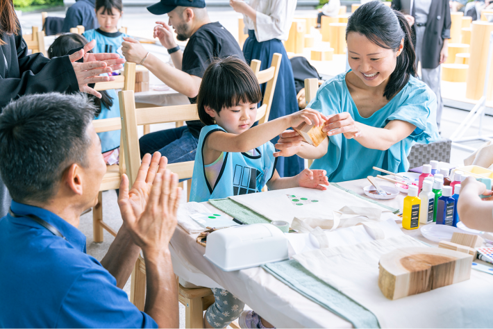 一方でニキさんはこのイベントについて、「吉野杉を、丸い木だけでなく、いろいろな形やサイズを用意し、自由に組み合わせて動物や植物の形にしたり、幾何学的なデザインにしたりするのを楽しんでもらえたと思います。日々の生活のなかで意識していなくても、周りを見回すと木のおかげで家具や建物など生活の基盤となるようなものが作られています。常に木の恩恵を受けているということを感じられたらいいですね」とコメント。