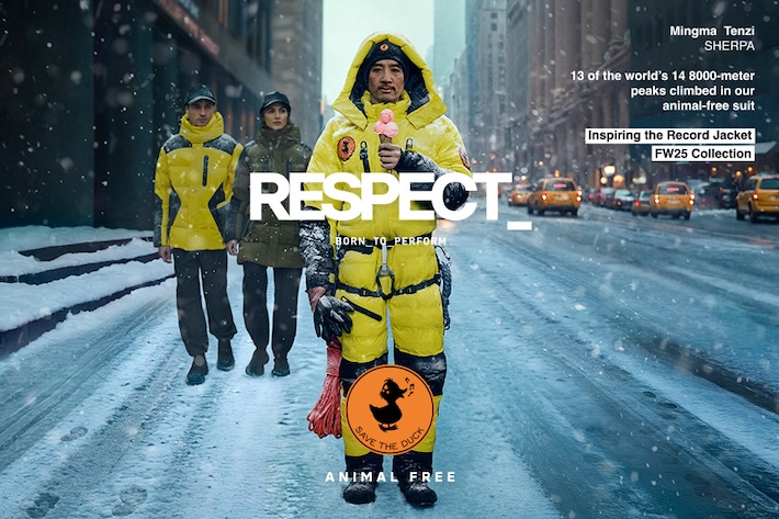 [SAVE THE DUCK], the sustainable vegan apparel brand born in Milan, Italy, known for its “100% Animal Free” slogan and manufacturing without animal-derived materials. This season, SAVE THE DUCK embarks on a special journey inspired by the world’s most challenging peaks and the intrepid adventurers who dared to conquer them. The Himalayan landscape and its rich flora influenced the color palette and prints of the Fall/Winter 2025 collection, reflecting the raw beauty of these highlands.