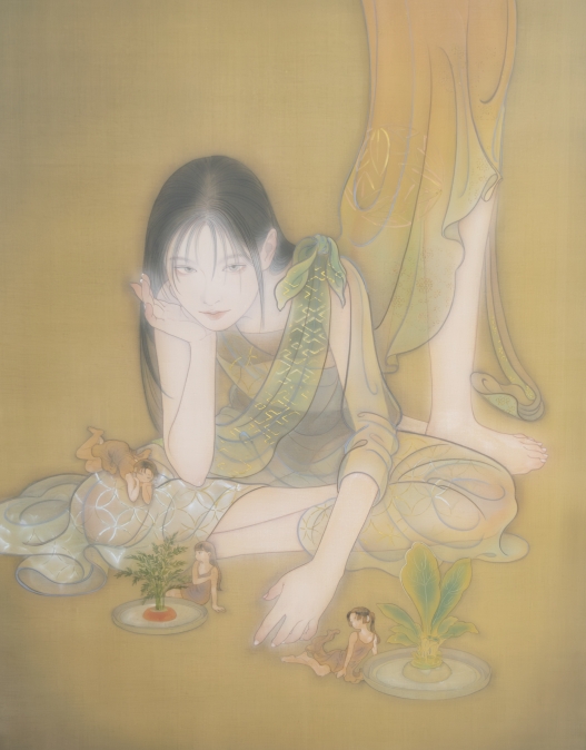 本展「綯い交ぜのいのち」では、女性像を軸に、花や小さな生き物、ときには小さな人びとの姿を描き、日常のあわいにひそむ、いのちの重なりや息づかいを感じていただければ幸いです。 ー山本有彩