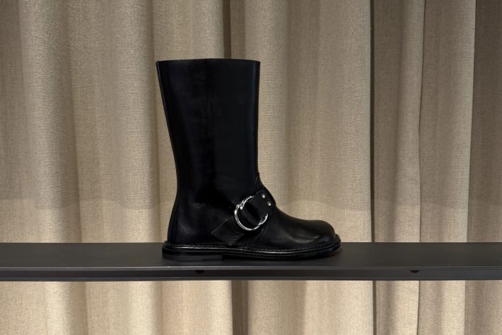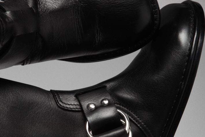 俳優マーロン・ブランド主演の映画からインスパイアされた「ワイルド」ブーツ。クラシックなバイカーブーツにフェミニンさを加えたピエールらしい力強いブーツです。