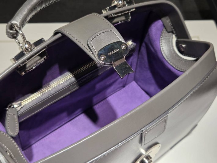 ダークグレーは、シルバーの金具、パープルの内装です。