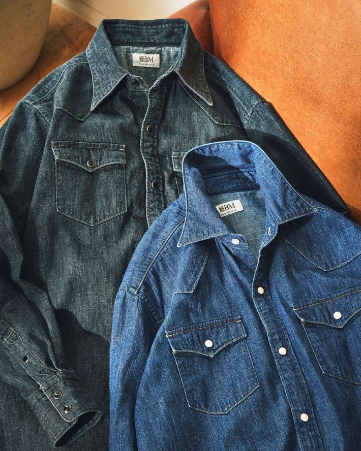 「基本的にはドレスシャツの仕立てで、ウエスタン本来の武骨さを適度に中和しています。とはいえ、イタリアブランドが作るドレスウエスタンよりはカジュアルに仕上げているのがポイント。しっかりブラウジングできるよう身頃にゆとりをもたせつつ、生地も重すぎず軽すぎずのオンスを厳選しました。製品洗いでストーンバイオブリーチ加工を施し、ヴィンテージテイストな色落ちに仕上げているのも特徴です。実はこのバランスを実現するのが非常に難しく、2年ほど前に一度作りかけるも断念したという経緯があります。しかし今回、ファクトリーを変えて再挑戦したところ、ようやくイメージどおりの表情を実現することができました」