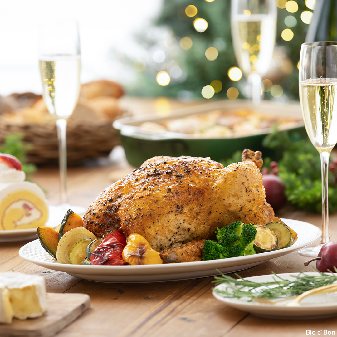 ホリデーシーズンを華やかに彩る香り高い丸どりをはじめ、米粉を使ったクリスマスケーキやオーガニック認証付きヴィーガンケーキなど、ビオセボンならではのとっておきのごちそうをご用意しました!