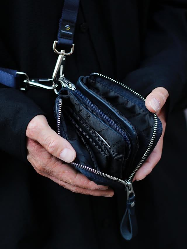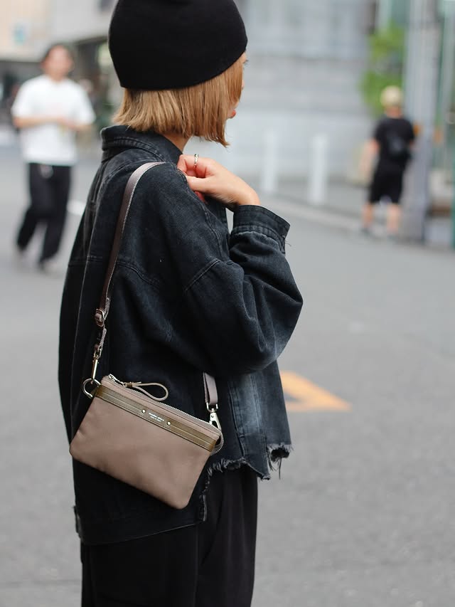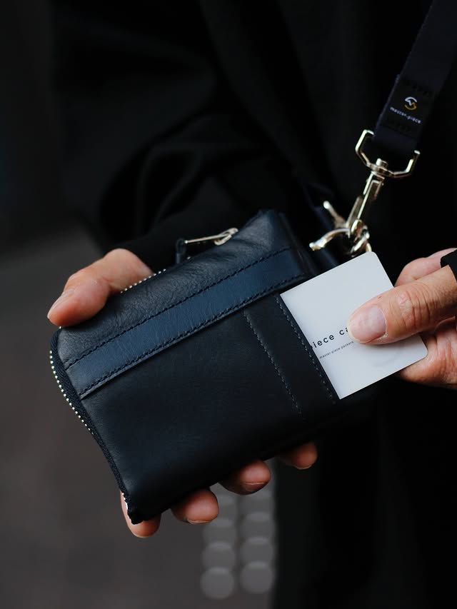 キャッシュレス化が進む現代、従来の財布の形にとらわれず、よりスマートで多機能な収納スタイルが求められています。「Pollet」は、“ポーチ(Pouch)”と“ウォレット(Wallet)”を融合した新発想のハイブリッドデザイン。ショルダーバッグとして身に着けても、バッグインバッグとして使っても、シーンに合わせて柔軟に対応します。3枚の袋パーツを精密にドッキングさせる独自の構造によって生み出されています。この縫製は高度な技術を要し、シンプルなデザインの中に職人の緻密な手仕事が凝縮されています。ポーチとして自立し、そのまま鞄に入れて持ち運べるだけでなく、ショルダーストラップを取り付けてPolletひとつで持ち歩くこともでき、財布としても使用できる万能アイテムです。