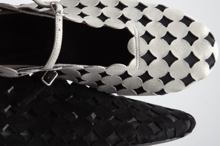 チュール素材の上にドットのカットワークレザーを施した、女性らしくエレガントな風合い。遠くからでも存在感の光る印象的なディティールは、きっとおしゃれ心を満たしてくれます。