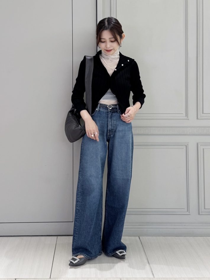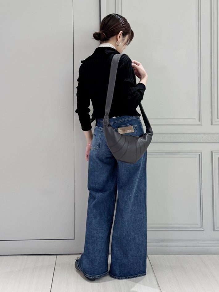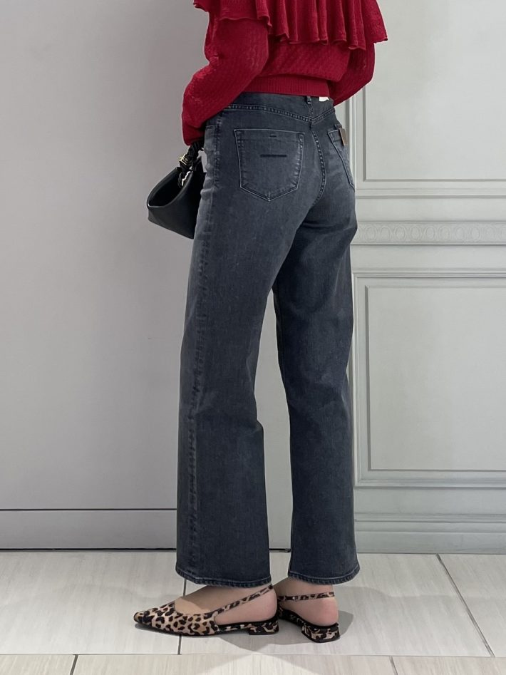 裾にかけて広がりのあるワイドなシルエットで、ウエストと腰回りはピタッとフィットのあるデザインが特徴。足をとにかく長く見せてくれて、スタイルアップ効果が抜群のデザインです。ヤヌークの中でも骨格問わず似合いやすいデニムでもあります!