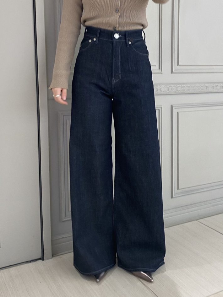 脚の形を気にせずに穿ける、程よい太さのワイドストレート。体型を拾いづらいですが、フロントやヒップ周りがもたつかないつくりで、女性らしく綺麗めに履くことができる美脚見えデニムです。ワイドすぎない程よい太さなので、裾はあまり溜めずにぴったりの丈で履くのがオススメです。裾をお直ししてもシルエットに変化がないので、小柄さんから高身長さんまで身長問わず綺麗にお召しいただけます。