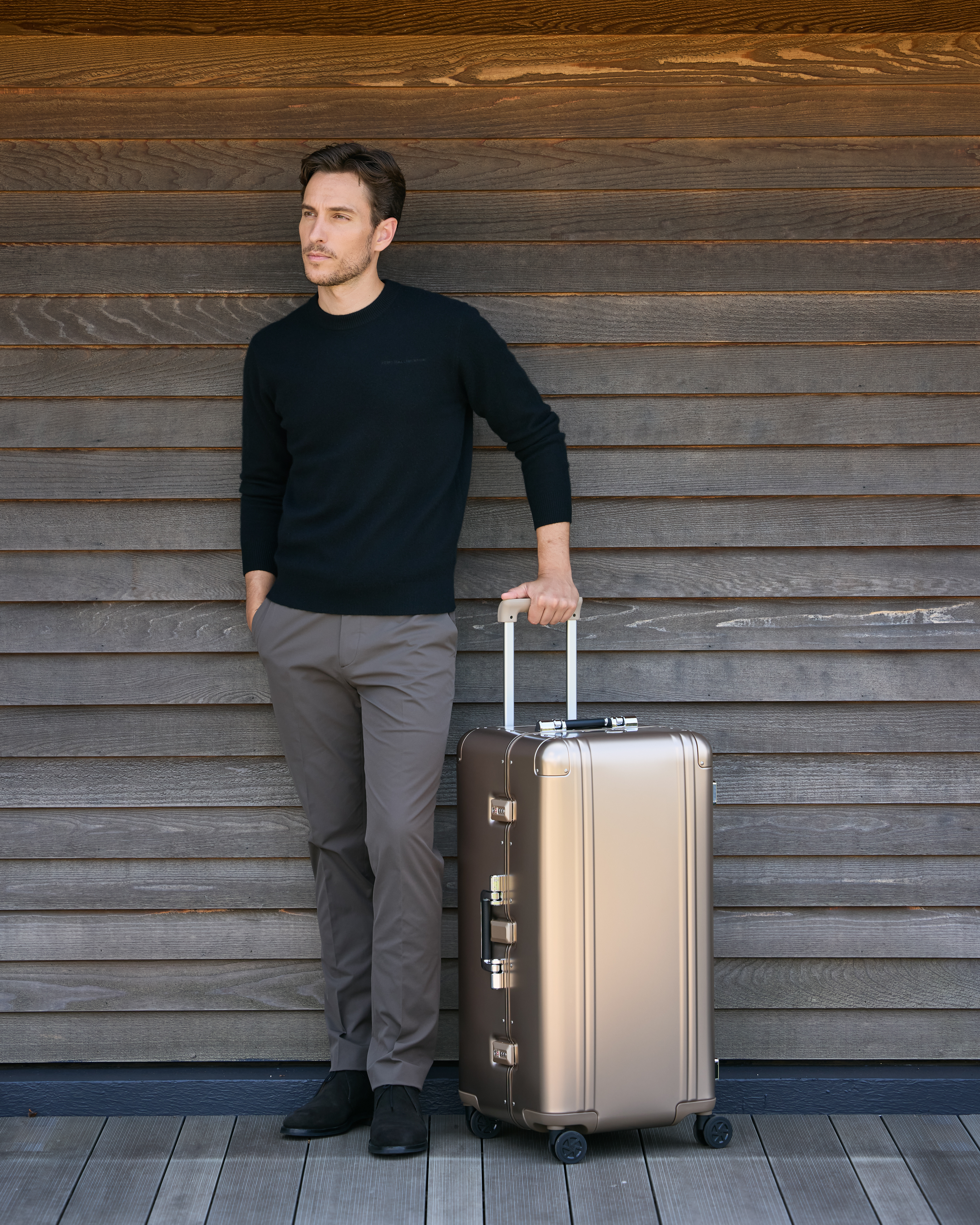 ブラント初となるアルミニウム製のトランク型ラゲージ。厚みのある縦長フォルムで、嵩張る荷物を収納しやすく、車のトランクに積みやすいサイジングと大容量を両立。美しく堅牢なTS ダイヤル式のラッチロックや、操作に優れたキャスター、荷物の偏りを防ぐ内装仕様といった、快適な機能を備えています。