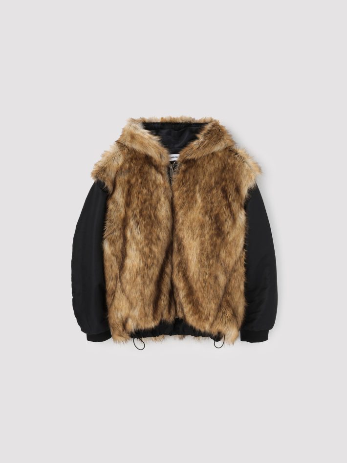 FAKE FUR REVERSIBLE HOODIE JACKET