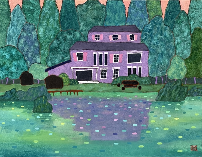 「Lakesaide Hotel」F6号 キャンバス、アクリル絵具