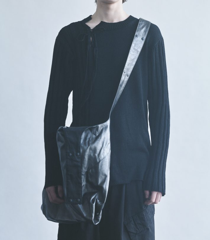 口金のポケットがアクセントの柔らかなバッグ。十分な容量を備えながら、体に沿うように細部まで工夫が施され、持つたびにしなやかな表情を見せます。