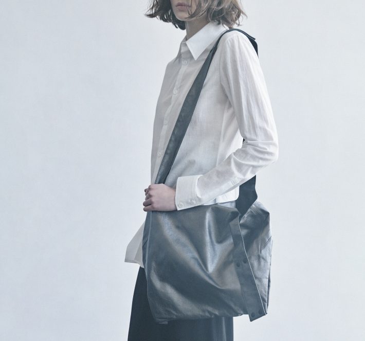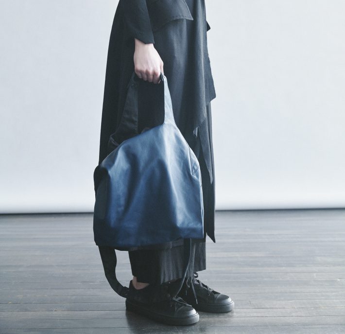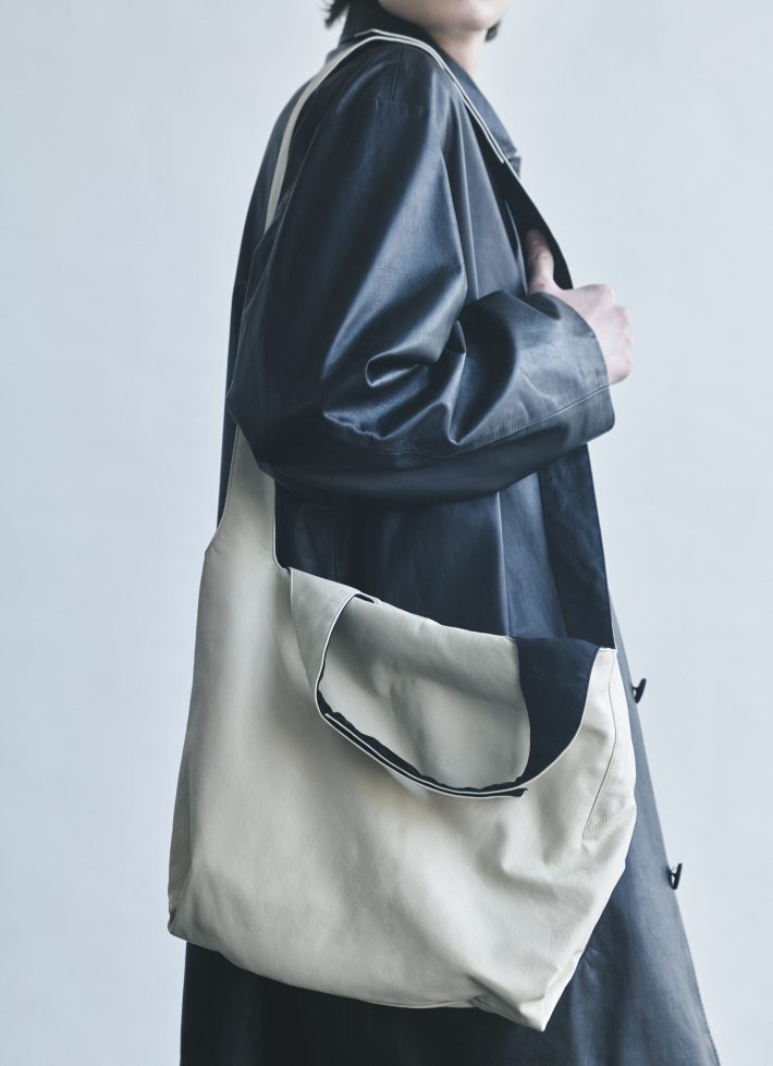 花の蕾のように穏やかにかたちを変え、日常に寄り添う3WAY仕様のショルダーバッグ。底面にひねりを加えることで、持ち手を重ねた瞬間に自然なドレープが生まれ、咲く前の花のように、静かな美しさを纏います。