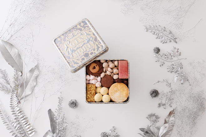 缶のデザインは、雪の降り積もる森の情景をイメージした限定のホワイトカラー。季節限定の特別感はそのままに、かわいらしいサイズ感でプチギフトやお手土産、自分へのささやかなご褒美にもぴったりの一品に仕上がりました。
