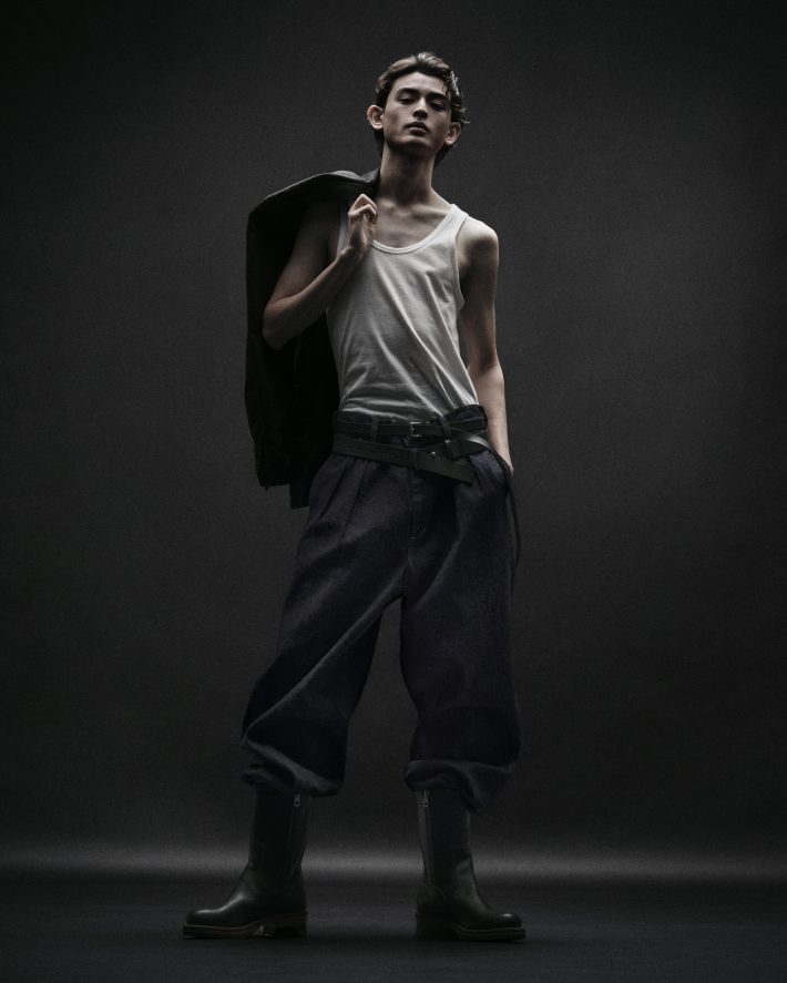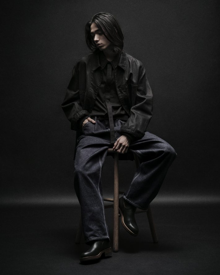 本作のコラボレーションではGround YのパターンメイキングやEDWINのジーンズをベースに白のステッチワークが映えるインディゴデニムと無骨なブラックツイルで登場します。デニムやツイルのハードな生地はワークテイストに仕上げ、カバーオールやワークジャケット、ペインターパンツなどGround Yらしいゆったりとしたシルエットで表現しました。
