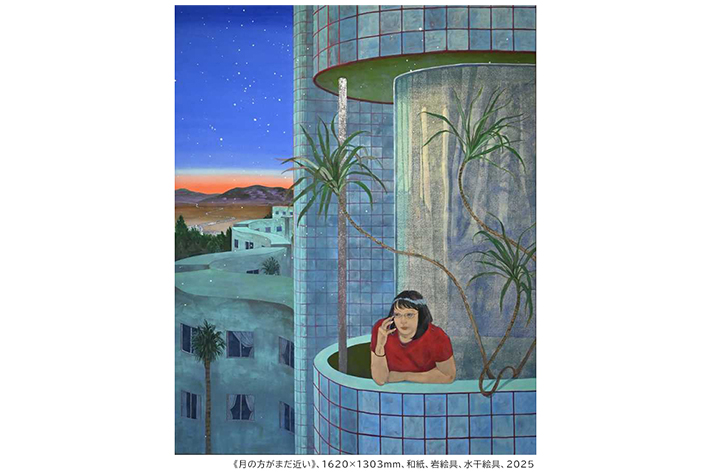 荒井颯子は1999年京都府生まれ、2025年春に多摩美術大学大学院日本画研究領域を修了。伝統的な日本画の技法で映画のワンシーンのような場面を描くアーティストです。