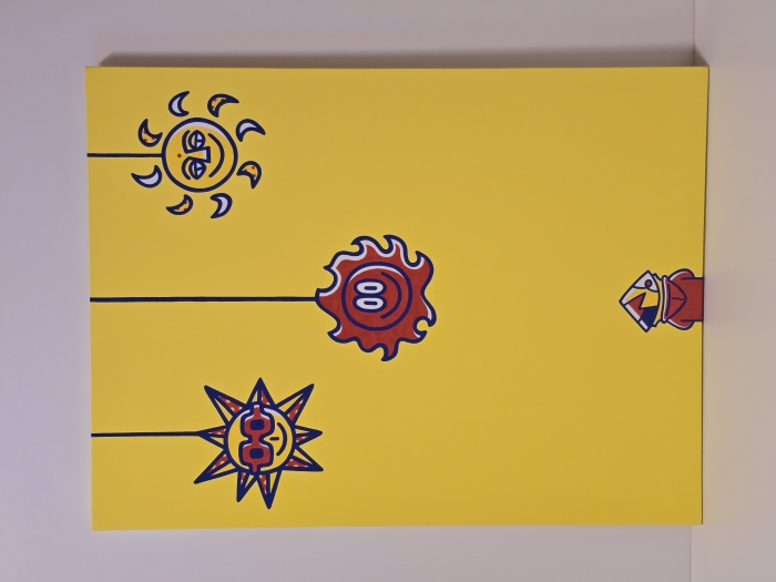 僕は旅をしながら、世界のあちこちで絵を描いてきました。同じ太陽を見ているはずなのに、国や文化、立つ場所によって、その見え方や意味はまったく違う。それは「当たり前」が、決してひとつではないという証拠でした。この展示は、旅で得た経験から始まり、太陽へと向かい、最後は太陽に包まれる空間です。違って見えることは、間違いじゃない。あなたがあなたの目で見た世界に、そのまま価値がある。この場所が、自分を肯定し、そして世界へ踏み出したくなるきっかけになれば嬉しいです。