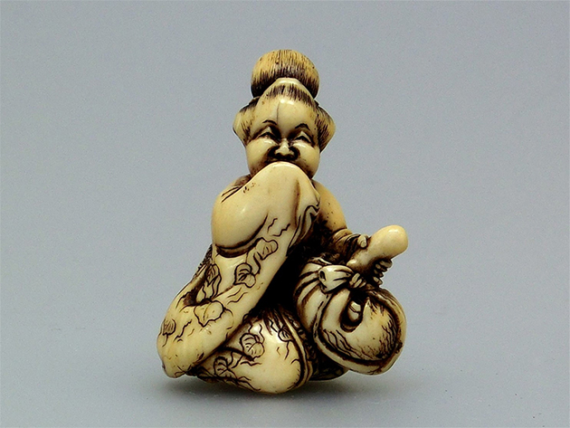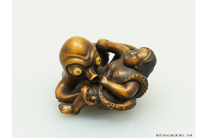 版画などの平面表現における春画は古来より「枕絵」「勝絵」「笑い絵」などと呼ばれ、人々の暮らしの中で親しまれた縁起物の一つです。春画根付や置物は、外側の視線に触れる部分と内部に隠された絡繰の部分の差異が特徴の一つとしてあり、手に取ることで初めて明らかになる構造や遊び心は、江戸の人々の美意識や洒脱な感性を感じられます。先人たちがユーモラスを持ちながらどのように性を表現していたのかをじっくりご鑑賞ください。