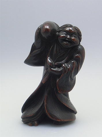 松茸お亀時代置物 銘 加納鐡哉、木刻