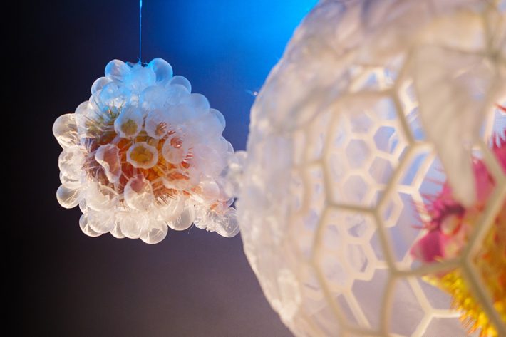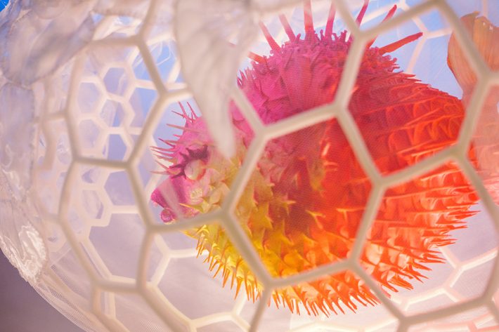 FOOD PUNK は、ウニとフグをモチーフに、トゲや毒のもつ攻撃性を、「チャーミングな毒」と「やわらかなトゲ」として捉え直し、その二面性を描きました。