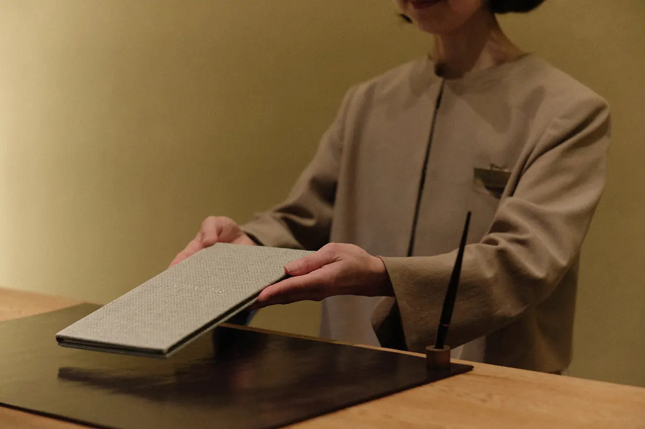 ご案内する奥のメインルームは、広々としながらも落ち着きを感じられる空間です。縦桟の障子を通したアンビエントな外光に満たされる、静謐な空気感。移動するにつれて見える景色を徐々に変え、室内にいても自然を感じさせる日本の伝統的な作法を緻密に取り入れることで、品位のある上質な空間が生まれています。