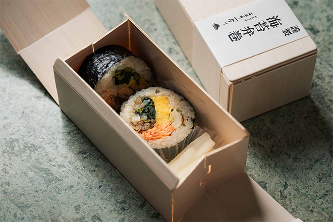 肉厚で歯応えのある瀬戸内産の海苔を使用した、一口サイズの海苔弁巻きです。LOUNGE SIX限定仕様です。